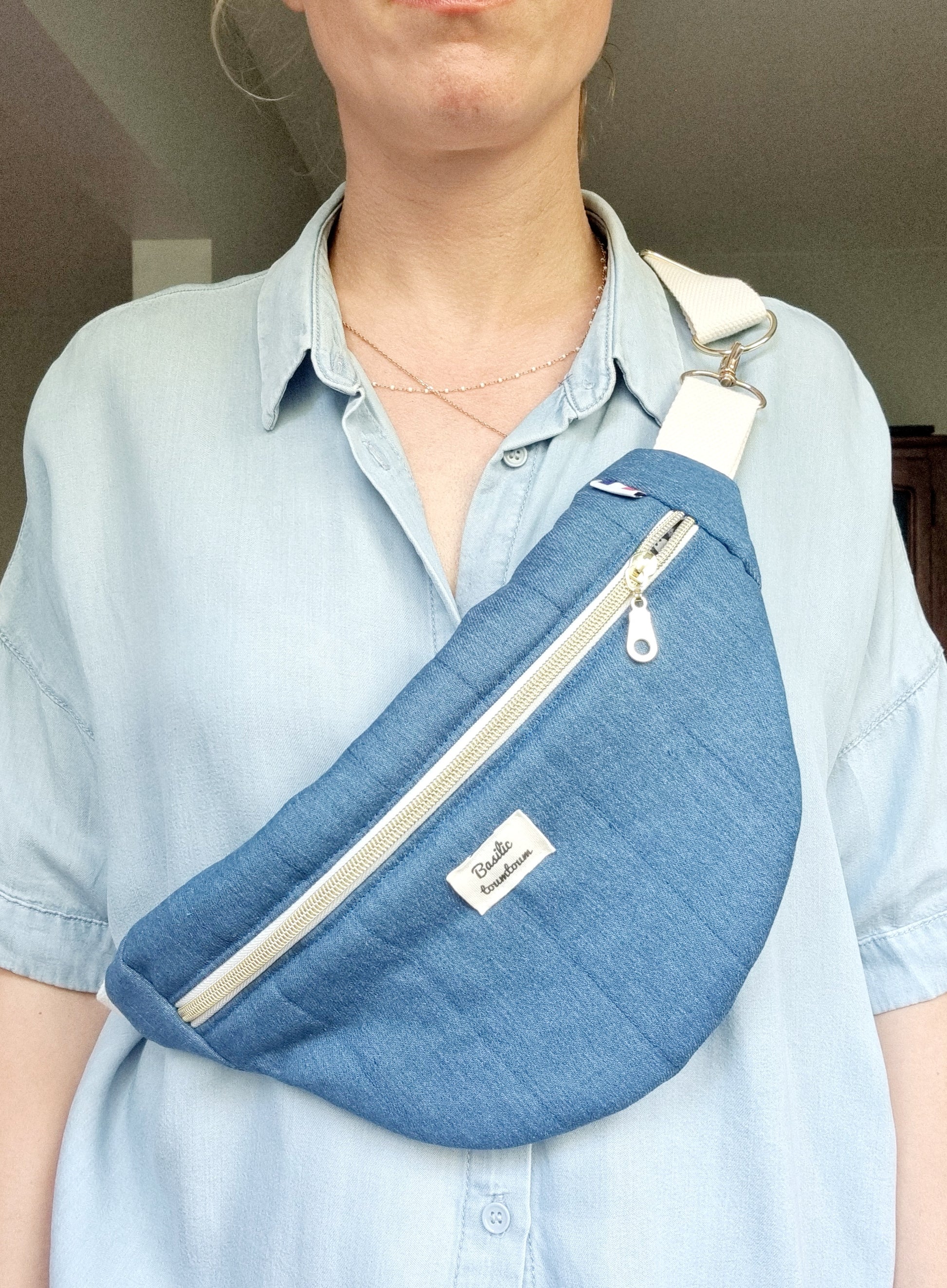 Elle peut être porté en bandoulière, sur la poitrine ou autour de la taille.