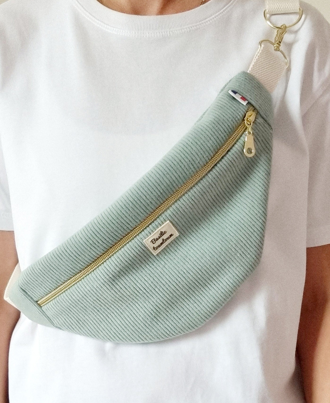 Banane velours côtelé vert celedon.