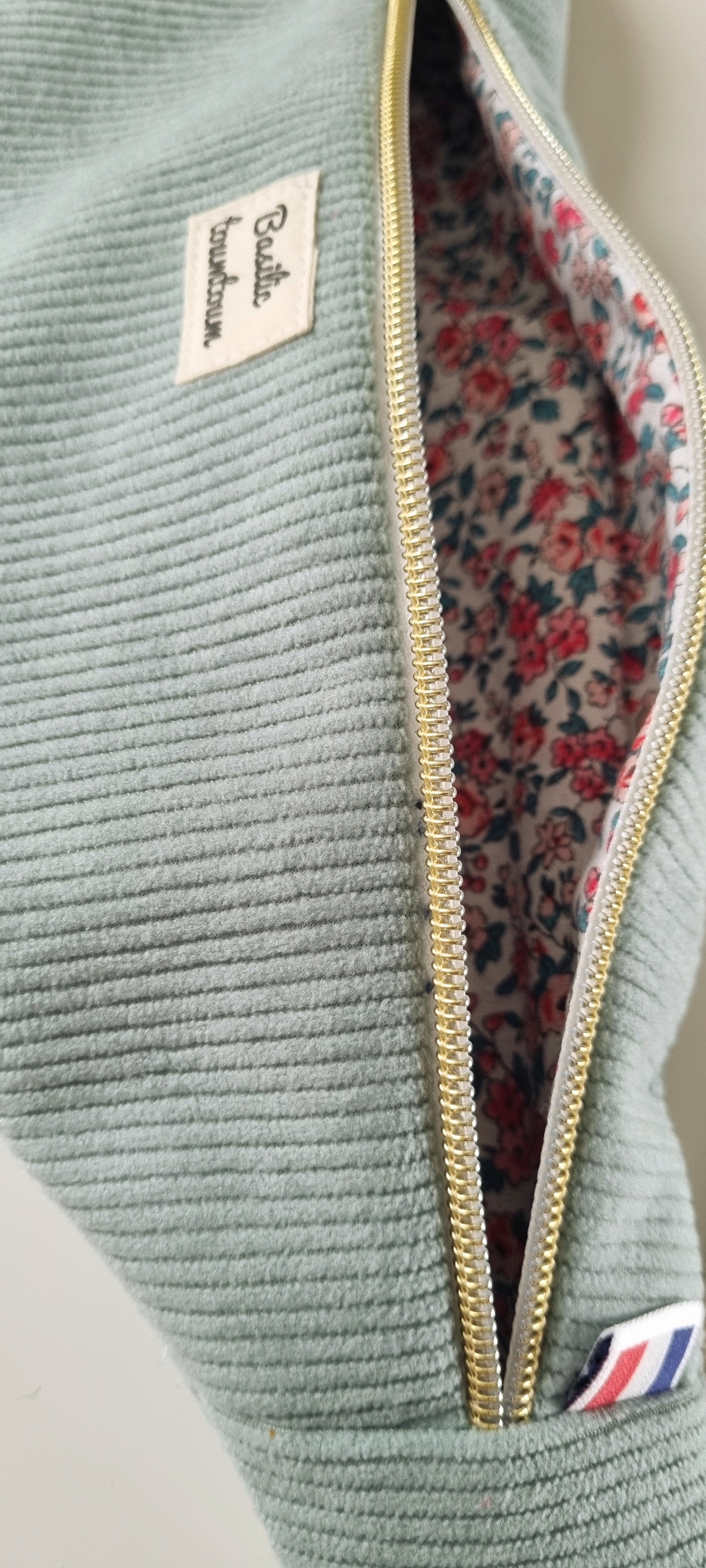 •Description :Confectionné en velours côtelé épais et tissu œko tex fleuri.