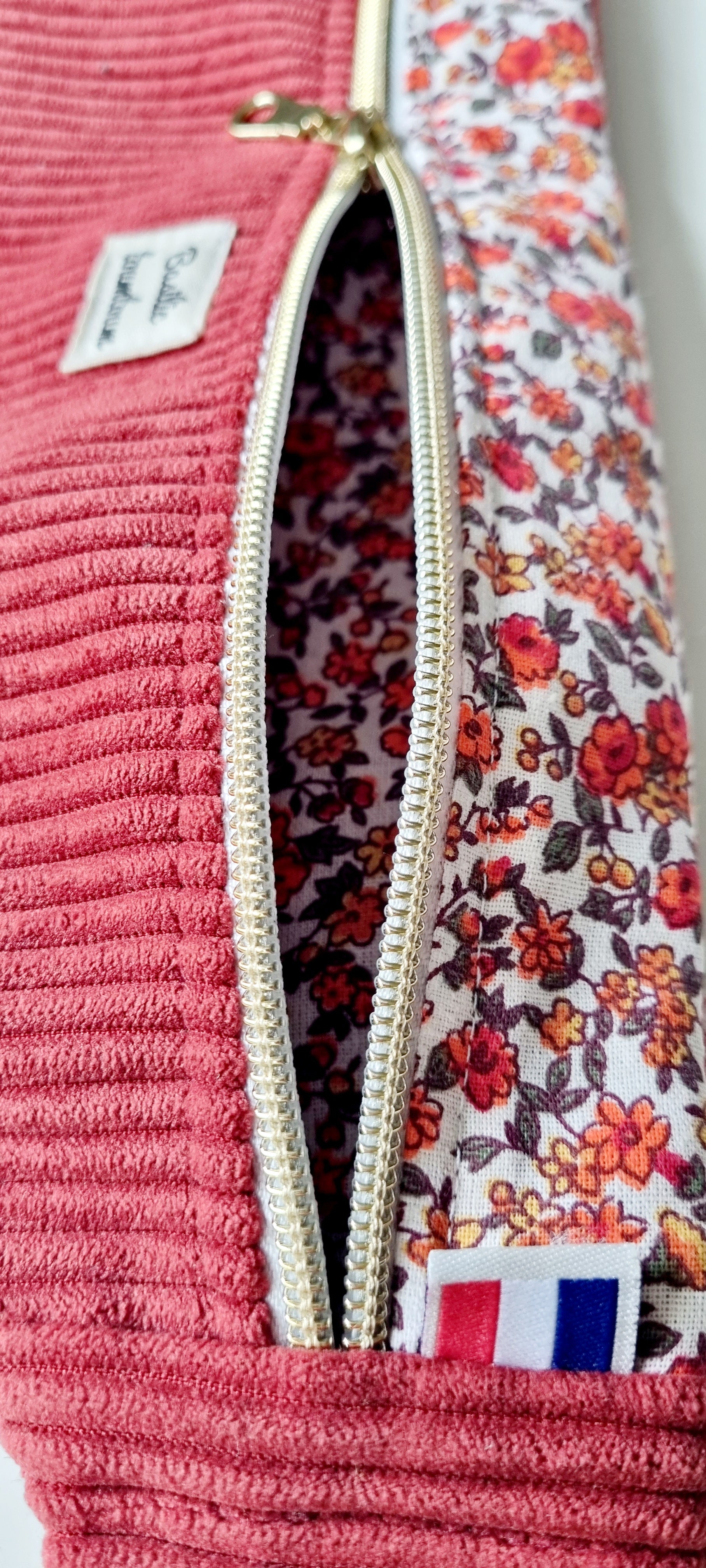 •Description :Confectionné en velours côtelé épais et tissu œko tex fleuri.