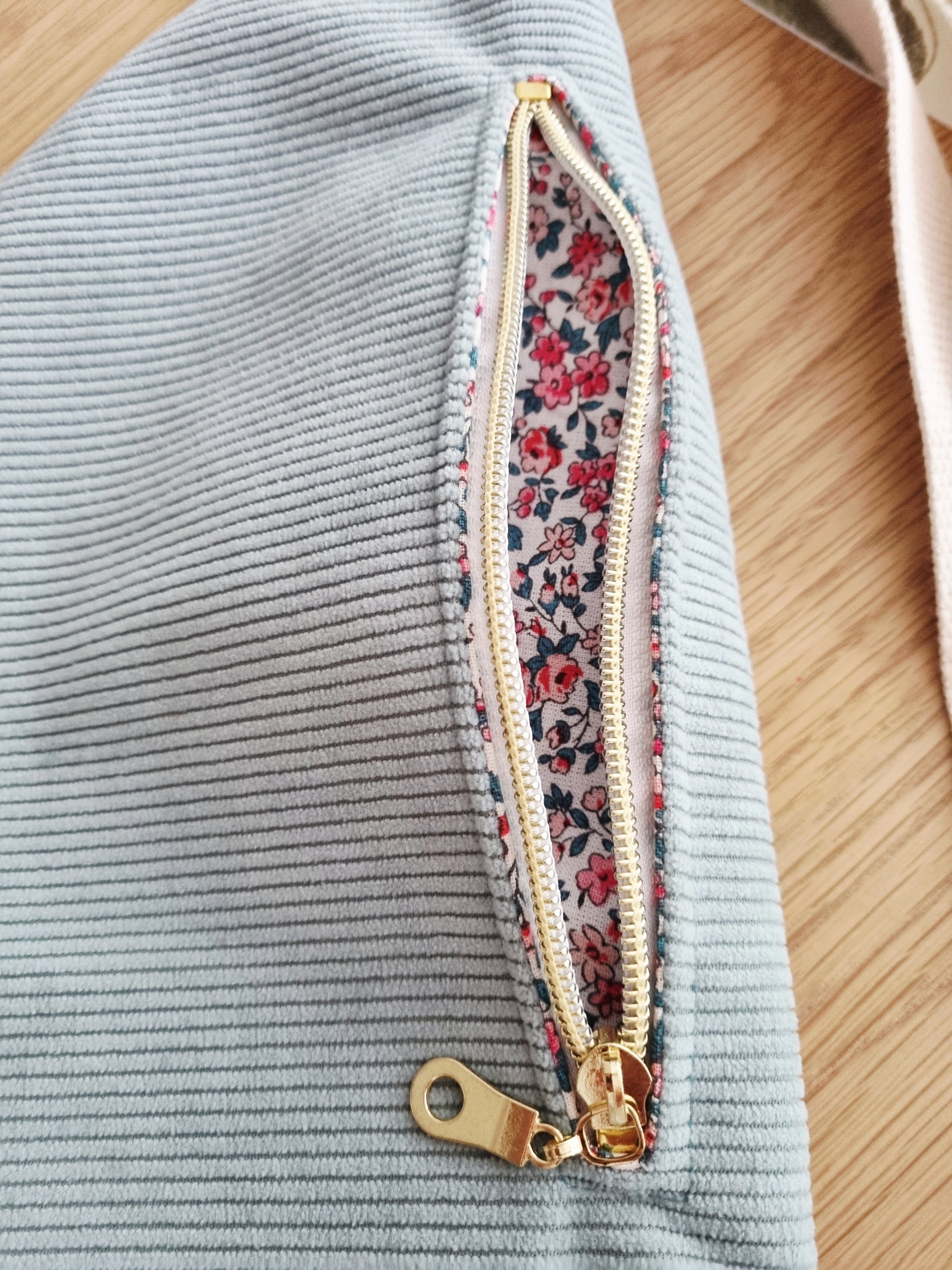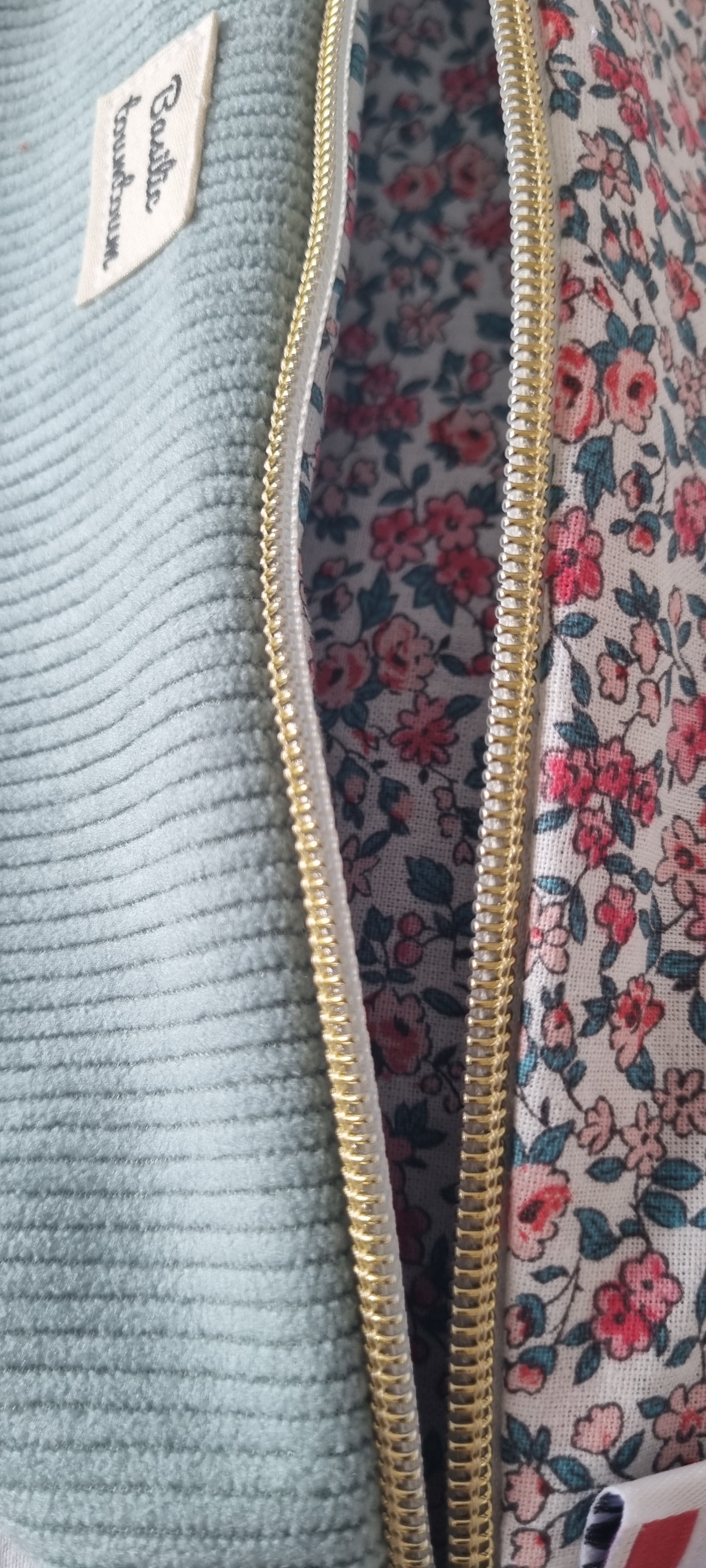 •Description :Confectionné en velours côtelé épais et tissu œko tex fleuri.
