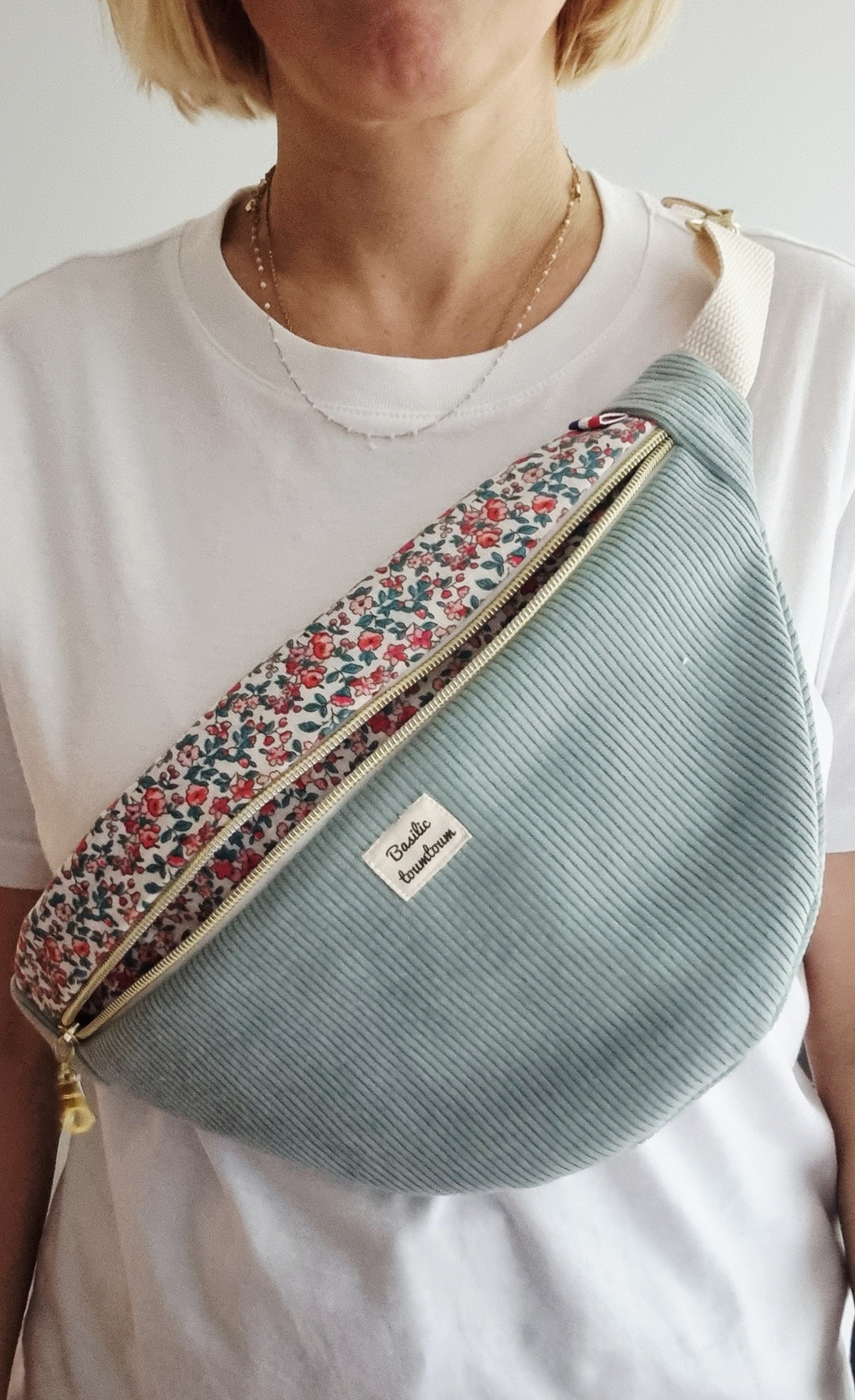 Elle peut être porté en bandoulière, sur la poitrine ou autour de la taille.