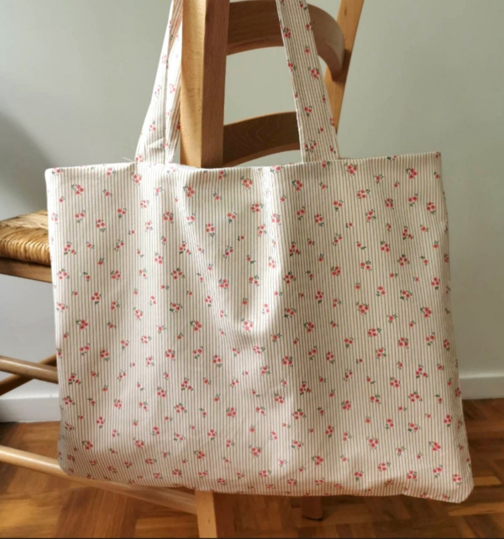 Un tote bag confectionné dans mon atelier, réalisé avec :
