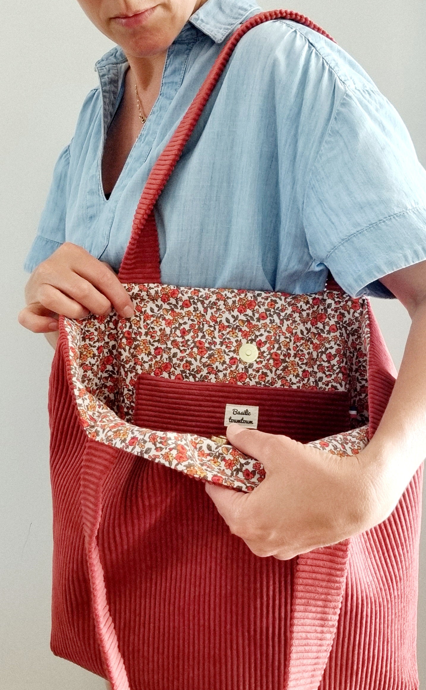 Tote bag en velours côtelé bordeaux d'origine Française de qualité réalisé avec :