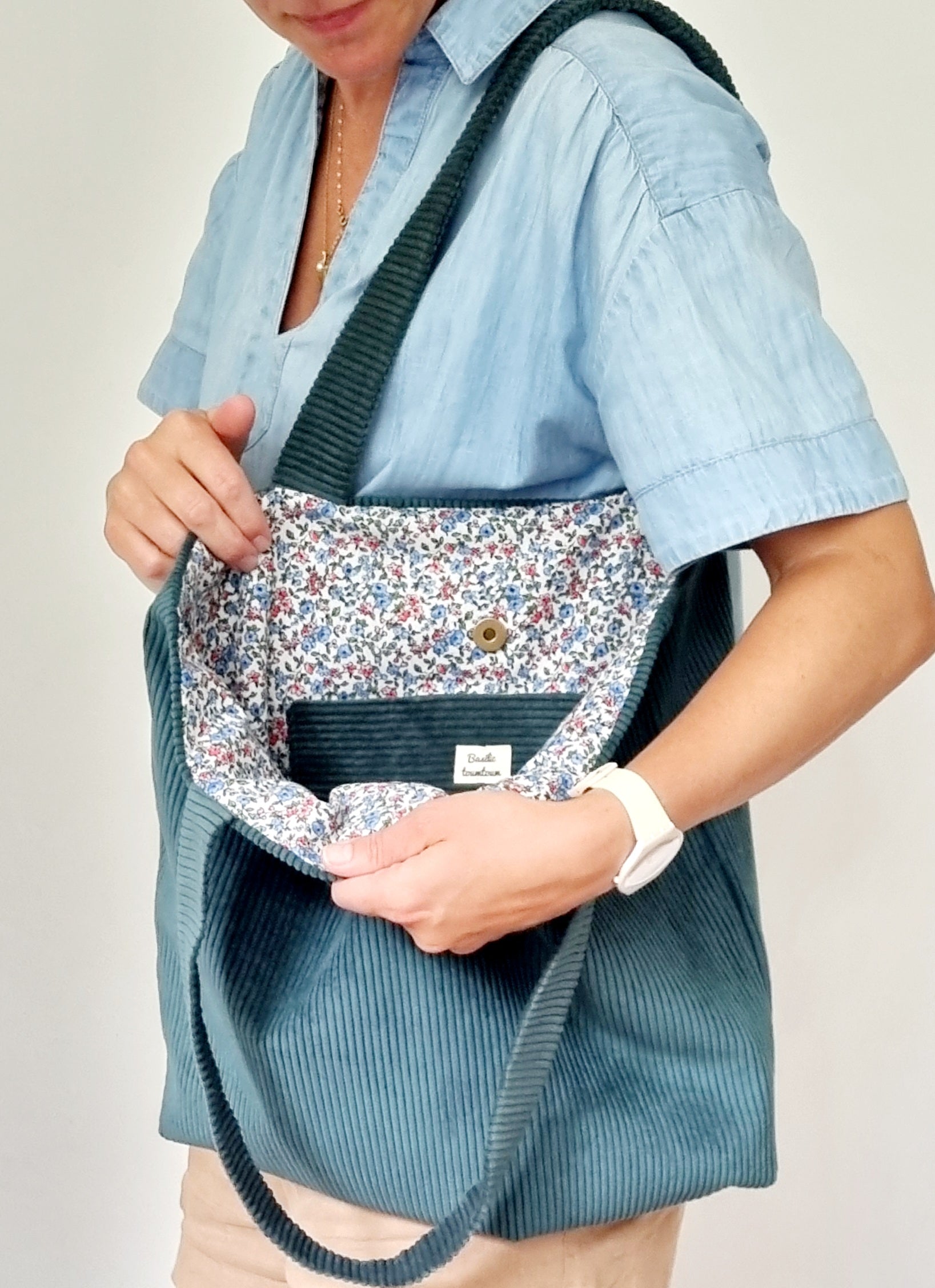 Tote bag en velours côtelé vert d'origine Française de qualité réalisé avec :