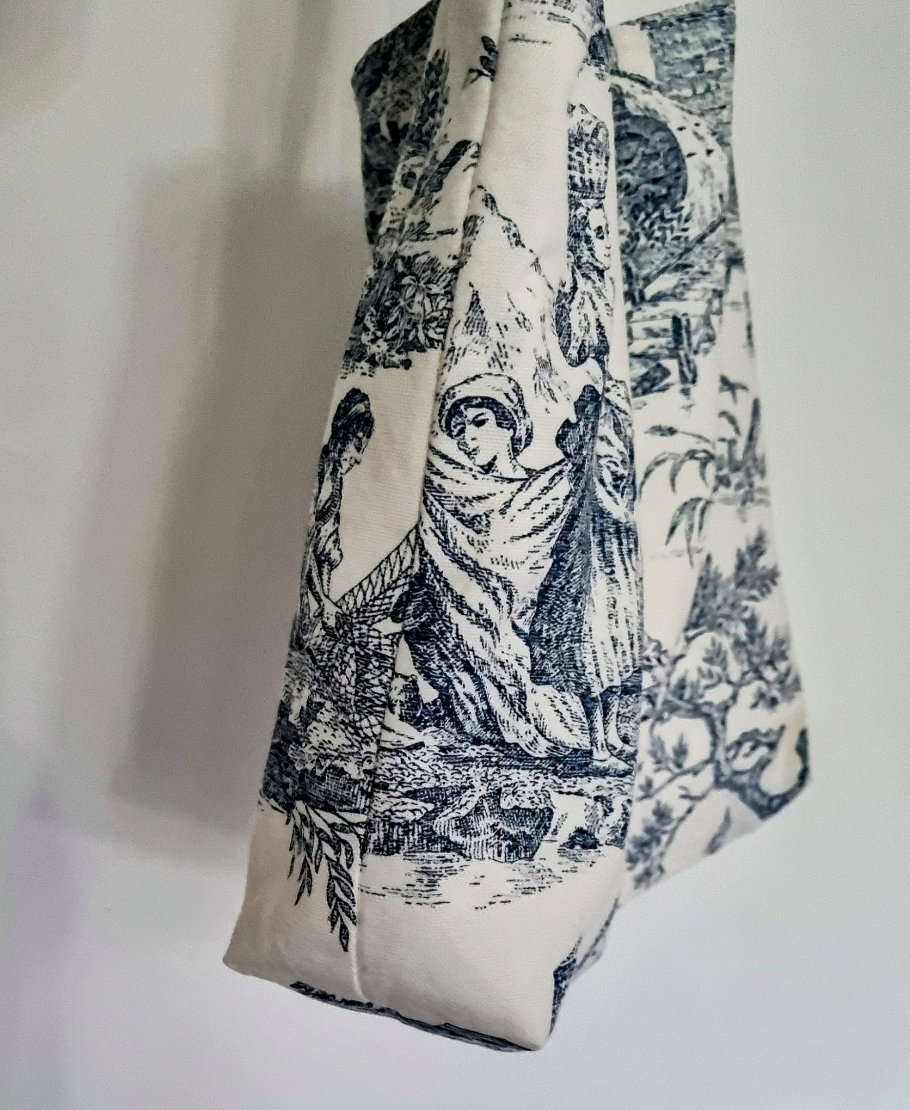 Tote bag 100% Francais confectionné en Toile de Jouy bleu réalisé avec: