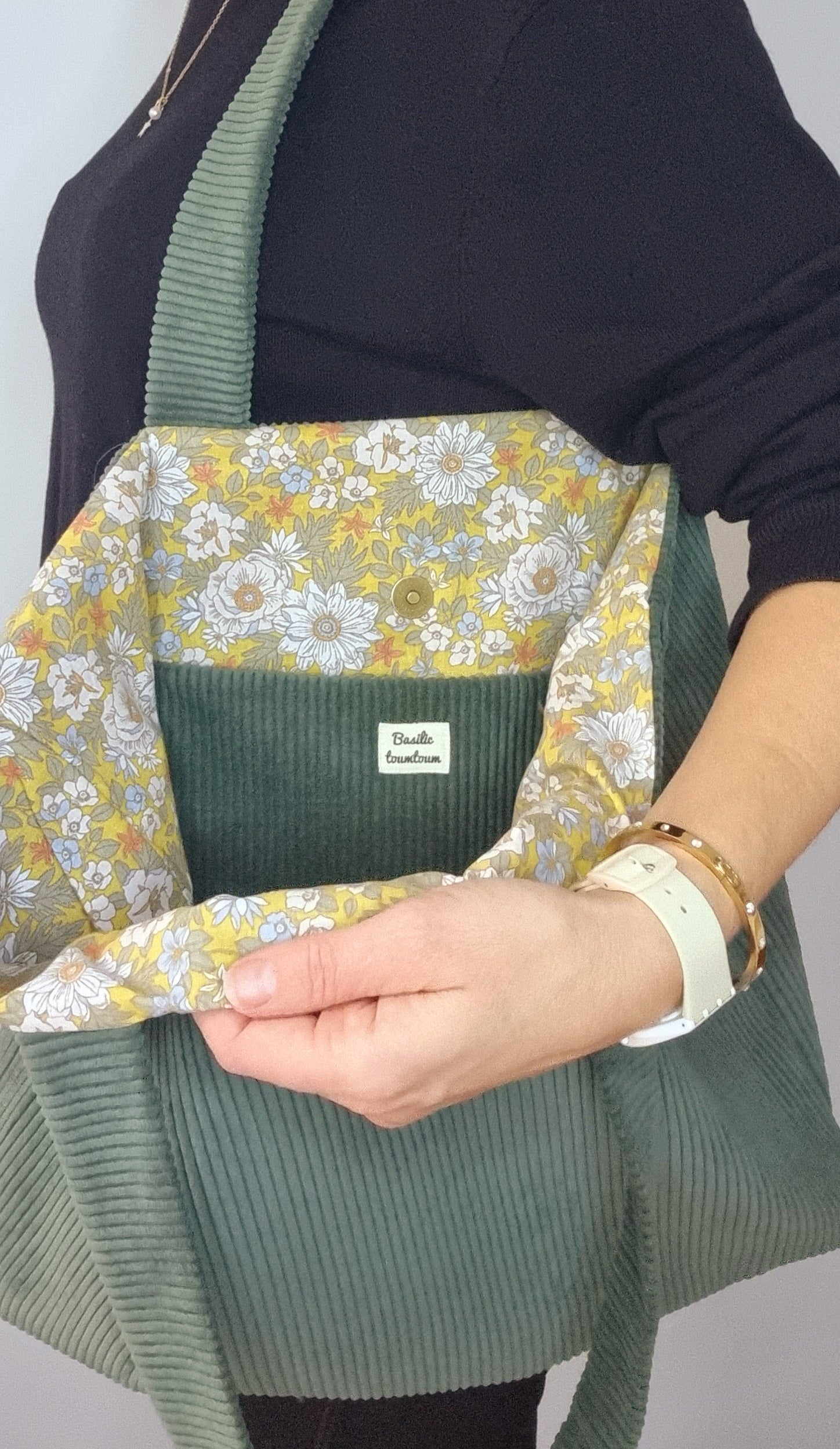 Tote bag en velours côtelé vert d'origine Française de qualité réalisé avec :